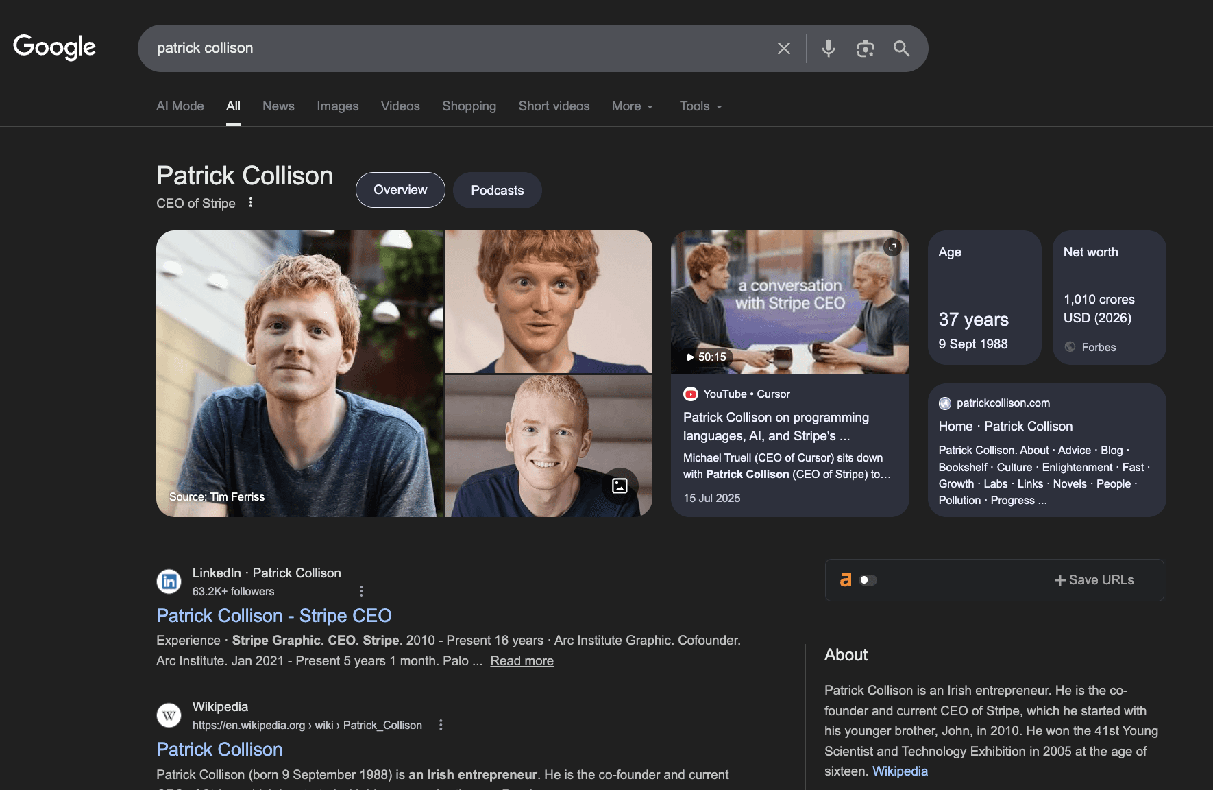 That info box next to Patrick's name? That's a Knowledge Panel.
