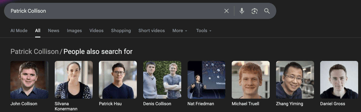 begins appearing in the "People also search for" carousel on the panels of other leaders